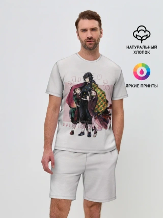 Мужская пижама с брюками / Гию оберегает Танджиро и Незуко
