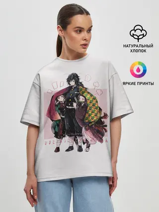 Женская футболка оверсайз / Гию оберегает Танджиро и Незуко