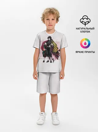 Детская пижама с шортами / Гию оберегает Танджиро и Незуко