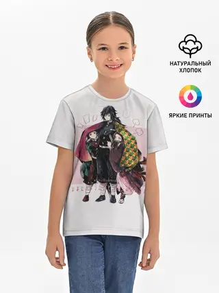 Детская базовая футболка / Гию оберегает Танджиро и Незуко