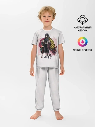 Детская пижама с брюками / Гию оберегает Танджиро и Незуко