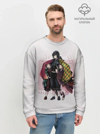 Мужской свитшот базовый / Гию оберегает Танджиро и Незуко
