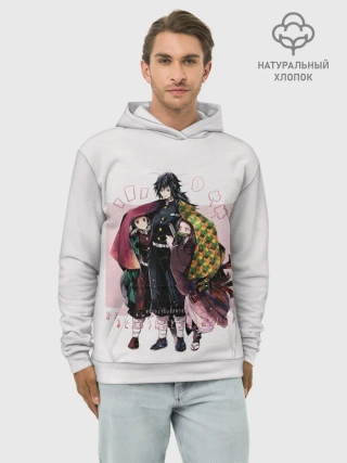 Худи мужской база хлопок / Гию оберегает Танджиро и Незуко
