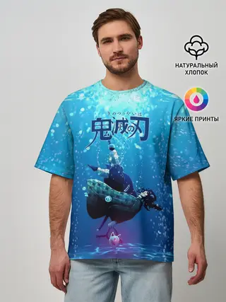 Мужская футболка оверсайз / Дыхание Воды - Гию Томиока