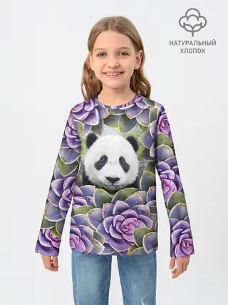 Детский лонгслив / Панда среди цветов