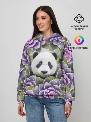 Женское худи / Панда среди цветов