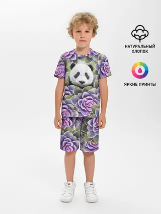 Детская пижама с шортами / Панда среди цветов