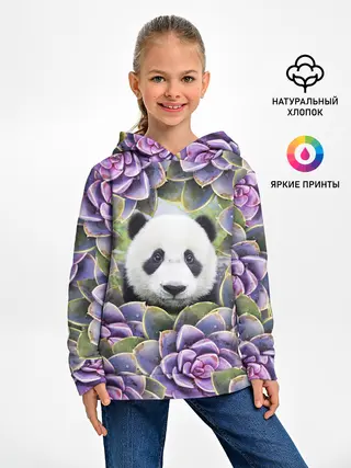 Детское худи / Панда среди цветов