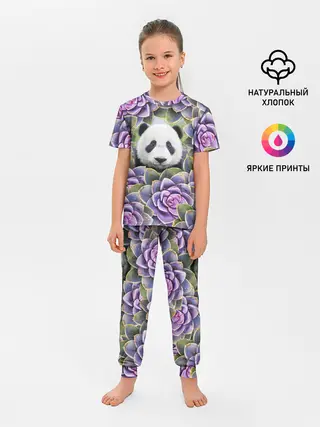 Детская пижама с брюками / Панда среди цветов