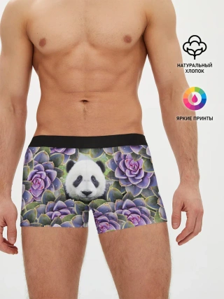 Мужские трусы боксеры / Панда среди цветов