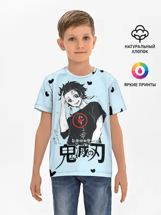 Детская базовая футболка / Танджиро Камадо черные сердечки