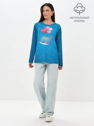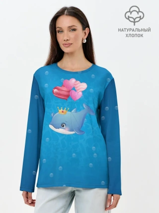 Лонгслив женский. Хлопок / Дельфин с воздушными шариками