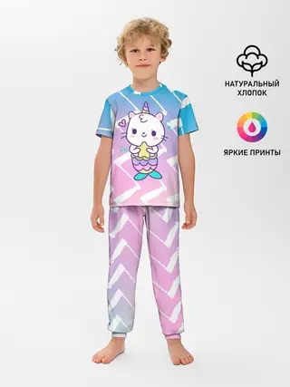 Детская пижама с брюками / Котик-рыбка-единорог