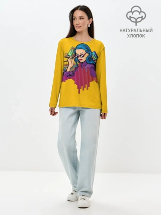 Лонгслив женский. Хлопок / Ретро. Девушка 90-х Арт.
