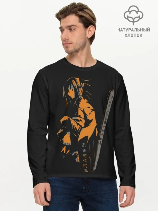 Мужской лонгслив базовый / Оранжевая тень Йо Асакуры на черном фоне