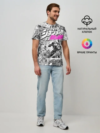 Мужская базовая футболка / Чернобелый комикс джоджо