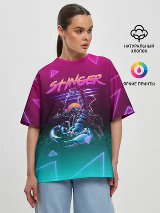 Женская футболка оверсайз / РЕТРО СКОРПИОН НЕОН