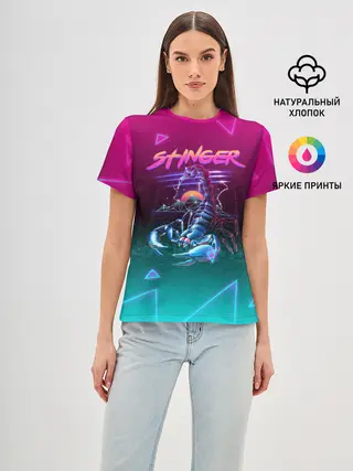 Женская базовая футболка / РЕТРО СКОРПИОН НЕОН