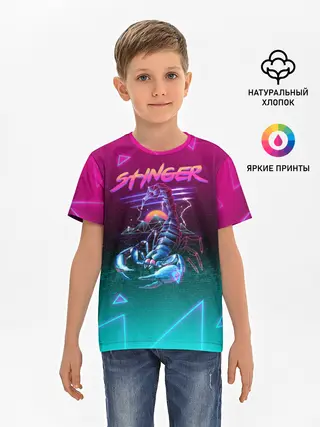 Детская базовая футболка / РЕТРО СКОРПИОН НЕОН