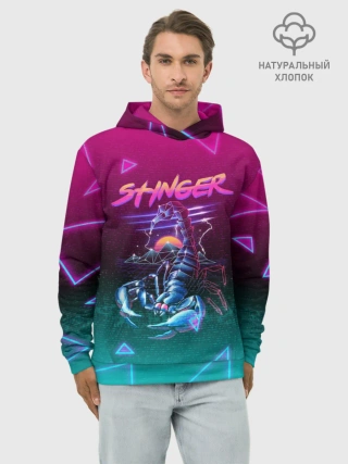 Худи мужской база хлопок / РЕТРО СКОРПИОН НЕОН