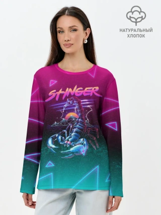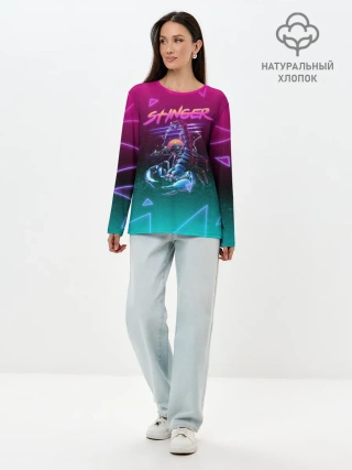 Лонгслив женский. Хлопок / РЕТРО СКОРПИОН НЕОН