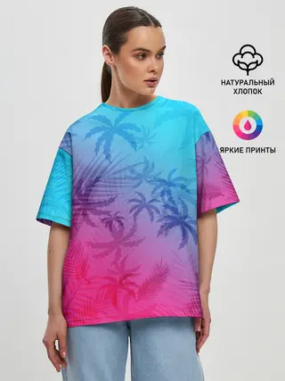 Женская футболка оверсайз / НЕОНОВЫЕ ПАЛЬМЫ / NEON