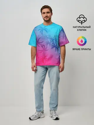 Мужская футболка оверсайз / НЕОНОВЫЕ ПАЛЬМЫ / NEON
