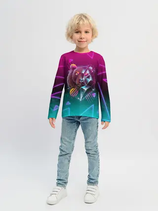 Детский лонгслив / RETRO CYBER BEAR NEON