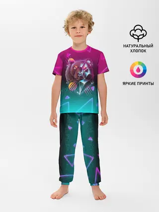 Детская пижама с брюками / RETRO CYBER BEAR NEON