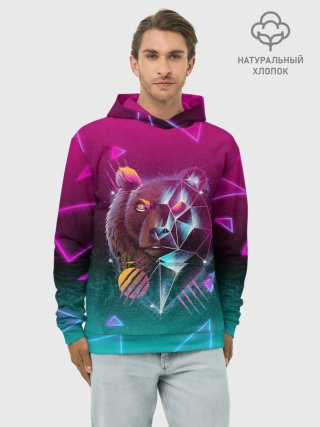 Худи мужской база хлопок / RETRO CYBER BEAR NEON