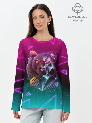 Лонгслив женский. Хлопок / RETRO CYBER BEAR NEON