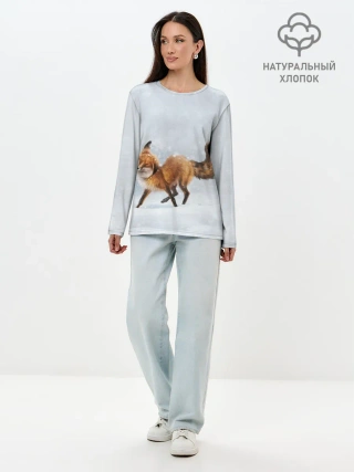 Лонгслив женский. Хлопок / Зимняя лисичка