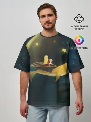Мужская футболка оверсайз / Девушка и кит в облаках