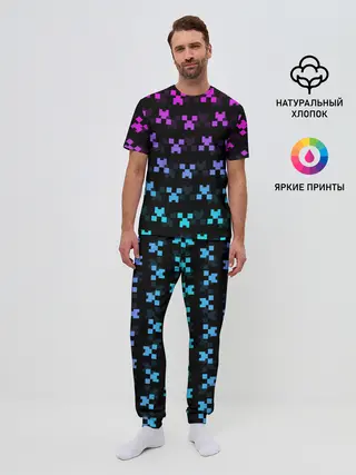 Мужская пижама с брюками / MINECRAFT CREEPER NEON