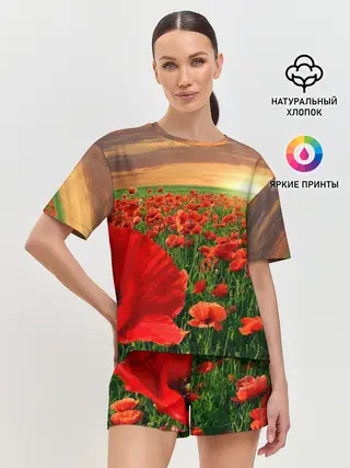Женская пижама с шортами / Красный мак на закате