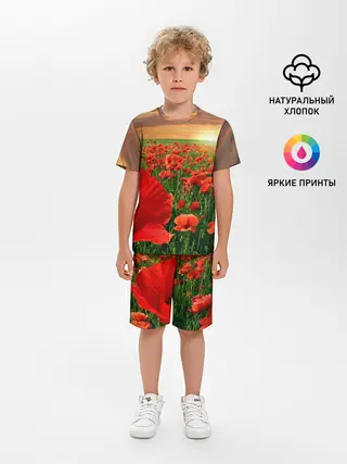 Детская пижама с шортами / Красный мак на закате