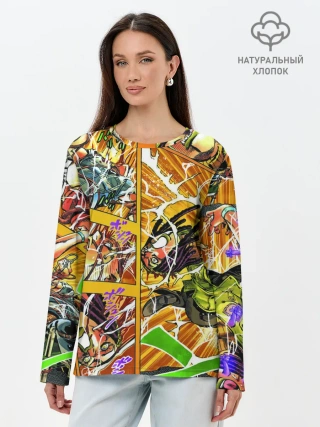 Лонгслив женский. Хлопок / Оранжевый комикс JoJo