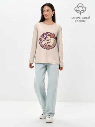 Лонгслив женский. Хлопок / Ёжик листья милый рисунок