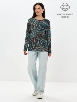 Лонгслив женский. Хлопок / ЦВЕТЫ РОЗЫ | STEEL ROSES