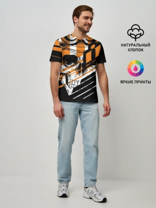 Мужская футболка оверсайз / Череп Icon оранжевый