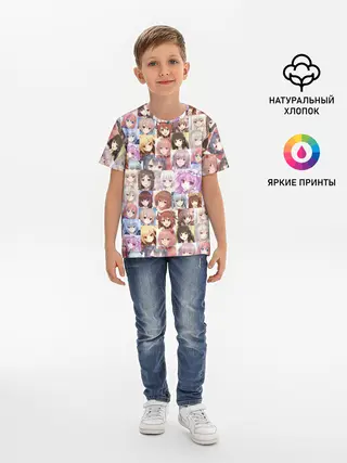 Детская базовая футболка / MANY FACES OF ANIME GIRLS monochrome