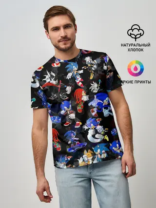 Мужская футболка оверсайз / Sonic паттерн