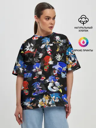 Женская футболка оверсайз / Sonic паттерн
