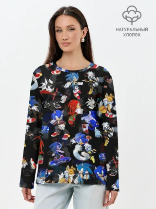 Лонгслив женский. Хлопок / Sonic паттерн