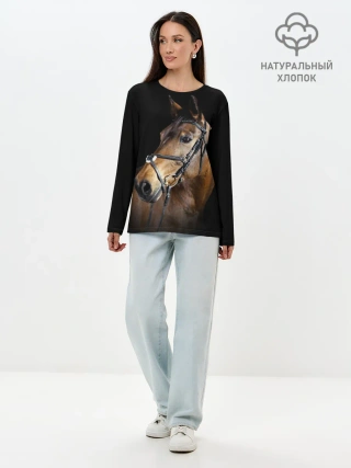 Лонгслив женский. Хлопок / Гнедая лошадь