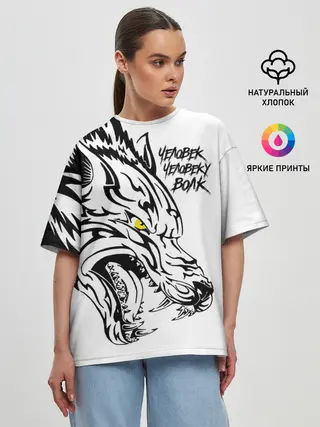 Женская футболка оверсайз / Человек человеку волк