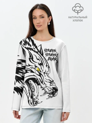 Лонгслив женский. Хлопок / Человек человеку волк