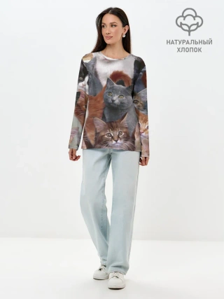 Лонгслив женский. Хлопок / Много котов