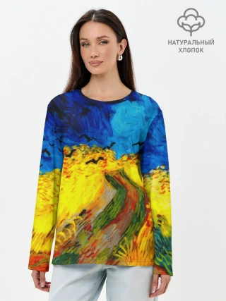 Лонгслив женский. Хлопок / ВАНГОГ НОЧНОЕ ПОЛЕ