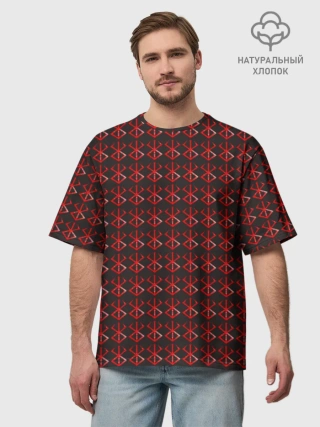 Мужская футболка оверсайз хлопок / Красный паттерн